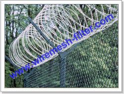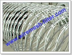 刀片刺网又名蛇腹网或刮刀型刺网,是一种近年来防护、隔离能力较强的新型产品。刀片用及耐腐蚀性的热镀锌钢板或不锈钢板做材料,由专用机械强力包附与热镀锌高碳钢丝或不锈钢丝做的芯线上。由于有着锋利美观的刀片刺、高强度的芯线,使本产品综合了防阻效果好、难破坏、安装美观方便快捷、耐老化等诸多优点。 产品广泛适用于高档住宅小区、重要仓库、监狱、边防军事重地等需要封锁围禁场所。依据安装方式可以分为:直线式刀片刺网、螺旋式刀片刺网,交叉式刀片刺网、平板式刀片刺网四种。