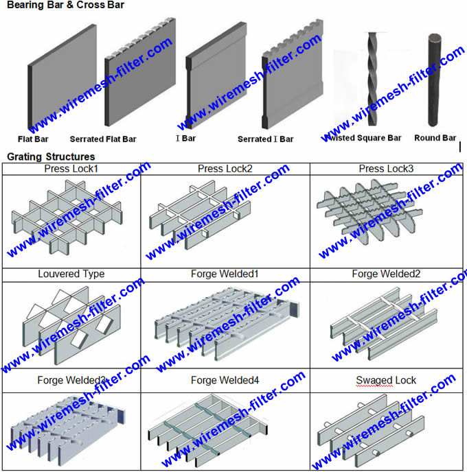 Bar Grating consists of a series of bearing bars welded with the cross bars at the intersection to form a load-bearing panel. Panels are manufactured by welding, locked by swaging, or press-locked processes.