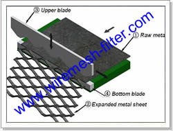 Expanded Metal is formed in an expanding press. The basic metal is simultaneously slit and cold-formed, which expands the slits into diamond shaped openings of uniform size and regularity.