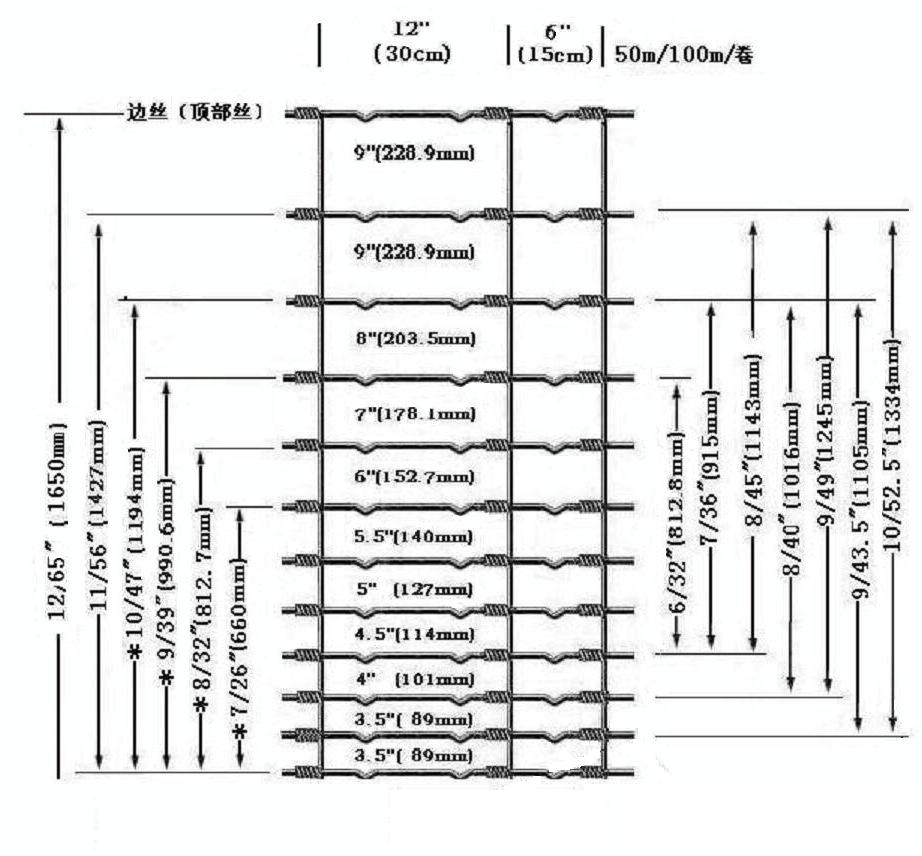 | Item | No. horizontal wire | Fence height | Stay opening | Inside wire gauge | Top & bottom wire gauge |