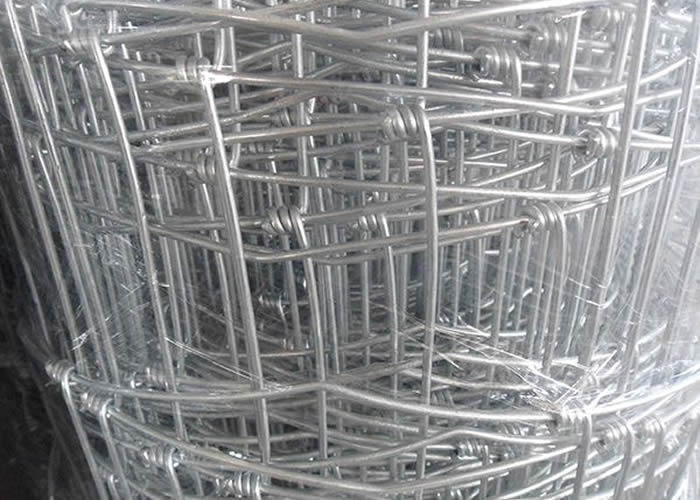 Hinged knot fence has four wrap hinge joints, in which two vertical stay wires wrap together to form hinged joint. The knot acts as a hinge that gives under pressure, then springs back into shape. This structure provides easy installation because the hinge "gives" while retaining full height for continuing protection and good looks. Vertical wires are individually cut and wrapped for maximum strength and flexiblity.