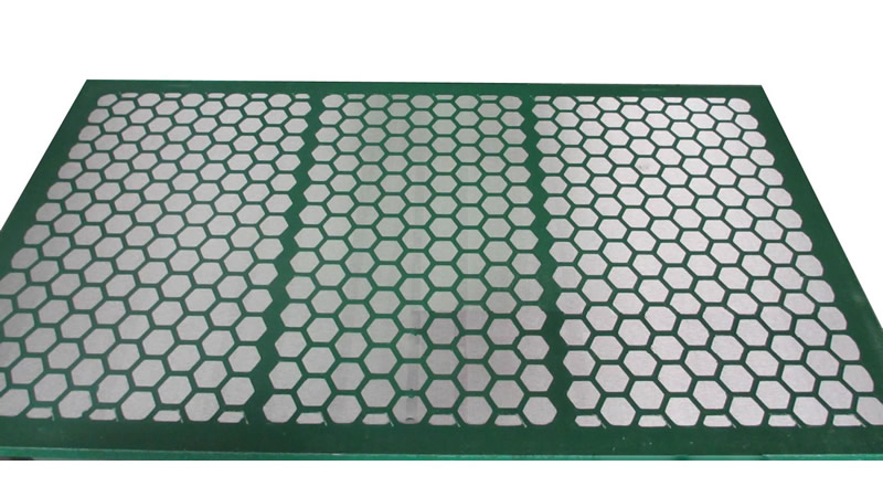 The perforated punch plate acts as the support structure for the wire cloth and is designed with a hexagonal pattern. This increases the non-blanketed surface area across the screening surface for fluid to pass thru. This pattern decreases the chances of screen blinding during operation and maximizes the amount of fluid passing thru the screen