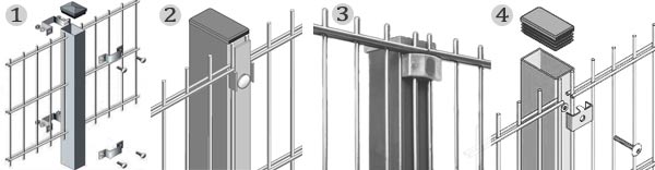 Posts are manufactured from different specifications of steel tube to suit the fence height. Fixings to attach the panels to the posts are made from steel backed by anti-rattle rubber pads and fixed to the posts by stainless steel tamper-proof security bolts.